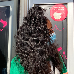 This fun style can be achieved with little to NO LEAVE OUT. The back is usually sewn (or glued) in, with the top being straightened and pulled up into a nice sleek ponytail, where we sew (or glue) the hair into the ponytail in a way where it covers the weave tracks in the back. Wash and blow out included.